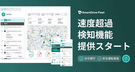モビリティデータを活用したサービスを提供する株式会社スマートドライブ(本社所在地:東京都千代田区、代表取締役:北川 烈、以下「当社」)は、クラウド型車両管理システム「SmartDrive Fleet」において、道路ごとの法定速度に対する『速度超過』検知機能の提供を開始しましたのでお知らせいたします。