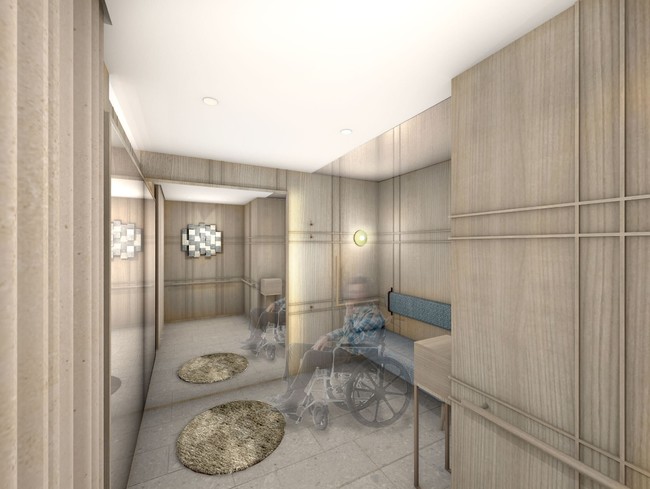 また、車椅子でもスムーズな出入りや着替えができるフィッティングルームを完備。横になった状態で全身をチェックできるよう、天井にも鏡を設置しており、この仕様は日本初となります。