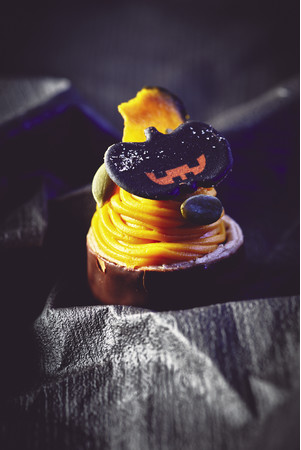 サクサクのパイ生地にカボチャのカスタードクリームをたっぷりのせて。バターの香りたつホクホクのカボチャが美味!