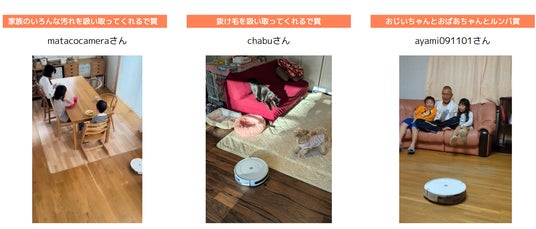今回、いろんな年代のお子さんがいて子育てが大変なご家庭や、ペットをたくさん飼っているご家庭、おじいちゃんとおばあちゃんと暮らしているご家庭の皆さんに「ルンバ」の魅力を素敵に撮影&発信していただきました。