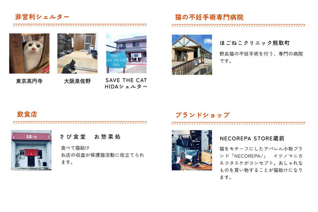 この世のすべての猫に安心して眠れる場所とお腹いっぱいの幸せを与える!をミッションとして、1匹でも多くの猫たちを救うために、保護猫カフェ・保護猫シェルター・保護猫イベント、猫ブランド、Eコマースなど、保護猫に関わる様々な事業を展開しており、運営している保護猫カフェや、非営利シェルター、ブランド・ショップなどを日本全国で15拠点、保護猫のための施設を運営しています。