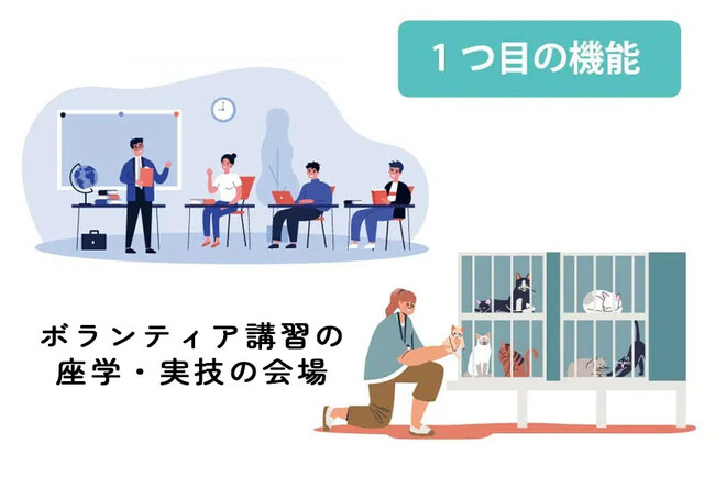 このシェルターは、単なるシェルターでなく、ボランティアの育成施設にもなります。