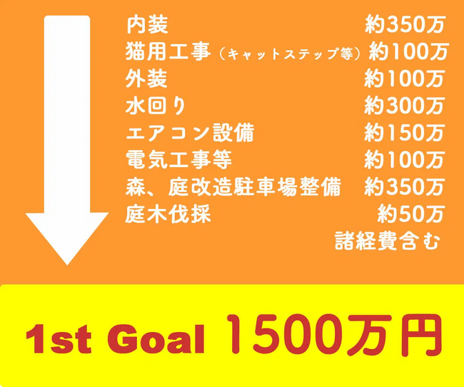 今回の購入した中古物件をシェルター機能を持てるように、猫たちに快適な空間にしっかりと改装をしたいと考えております。