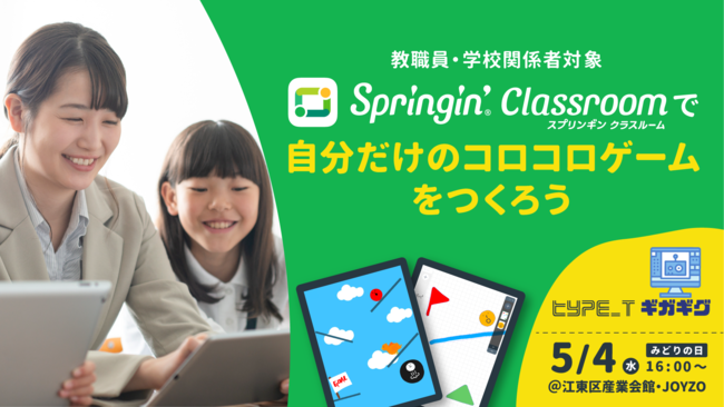 株式会社しくみデザイン(本社:福岡県福岡市、代表取締役:中村俊介、以下「しくみデザイン」)は、2022年5月4日(水) NPO法人「Type_T」主催で東京都江東区産業会館で開催される、教職員向けプログラミング教育イベント「GIGAGIG」にて、Springin' Classroomを用いたワークショップ並びにブース出展を行います。