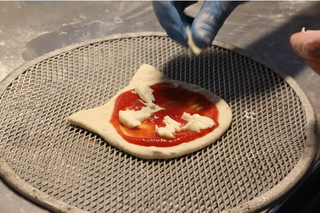 猫型であっても生地は1枚1枚ご注文後に伸ばして成型。店内の石窯で焼き立てをご提供します。