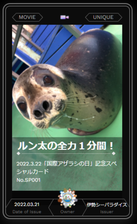 No.SP001 「国際アザラシの日」記念スペシャルカード ルン太の全力1分間! 動画