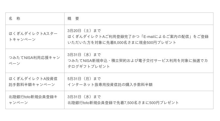 ※キャンペーンの詳しい内容はホームページをご確認ください⇒https://www.hokugin.co.jp/info/campaign