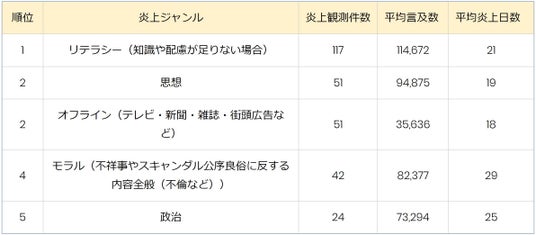 ~炎上ジャンル別の炎上件数1位は「リテラシー不足」に~