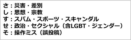 なお、当レポートにおける炎上ジャンル一覧は以下の通りです。この炎上ジャンルは、SNSリスクを含めたSNSノウハウを体系的に学べる一般社団法人SNSエキスパート協会が提唱する「炎上さしすせそ」をもとにアレンジして選出しています。