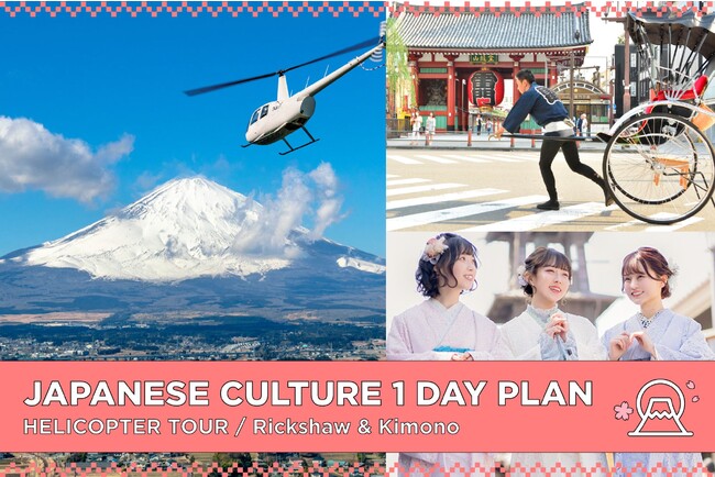 国内外のお客様に人気の「ヘリコプター富士山遊覧」に、VASARAのレンタル着物、えびす屋の人力車での浅草観光がセットになった、1日で日本の文化を満喫できる特別ツアーのご予約を開始いたしました。