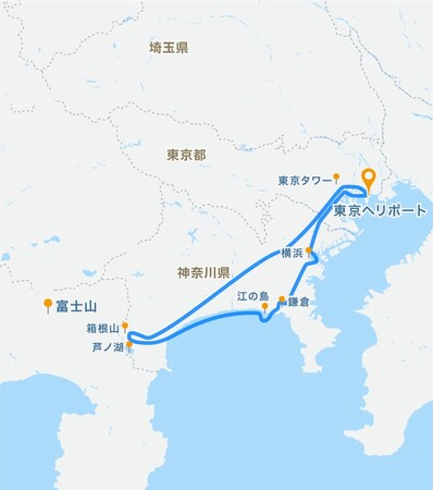 大満足の90分フライトでは、富士山だけでなく、東京タワーやレインボーブリッジ、横浜ランドマークタワー、江の島といった観光名所を、上空からお楽しみいただけます。