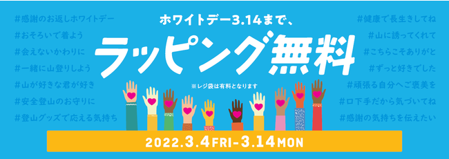 登山・クライミング・アウトドア用品総合専門店、クライミングジムを運営する株式会社好日山荘(本社:兵庫県神戸市、代表取締役社長 池田 真吾)は、3月4日(金)よりホワイトデー ギフトラッピング無料キャンペーンを開催します。