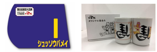 東京大賞典出走馬の馬番・馬名入りのミニゼッケンをオンラインショップにて販売します。今回も受注生産のため、お申込みいただいた全ての方がお買い求めいただけるほか、ミニゼッケンを購入された方には「TCKオリジナル湯呑み」をプレゼントします。