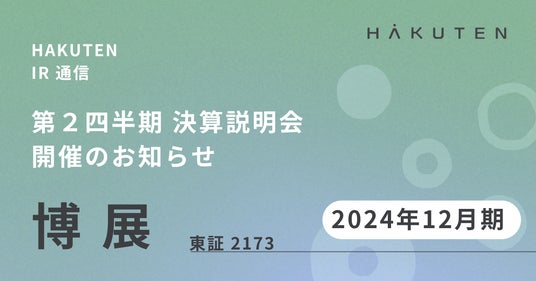 株式会社 博展(本社:東京都中央区、代表取締役社長執行役員COO:原田 淳)は2024年12月期第2四半期の決算説明会を会場及びオンライン配信にて開催いたしますので、下記のとおりご案内申し上げます。なお、決算発表は8月8日(木)を予定しております。