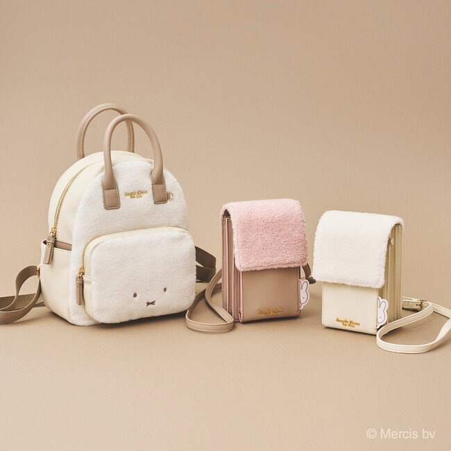 その他にも、ひょっこり顔をのぞかせるミッフィーが愛らしいスマホショルダー、トートバッグやフラワーモチーフとミッフィーをあしらった革小物、フェイスデザインのボアコインケースなど全10アイテムを展開。