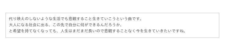 等身大の今を受け入れて先に進んでいく勇気をくれる1曲です。