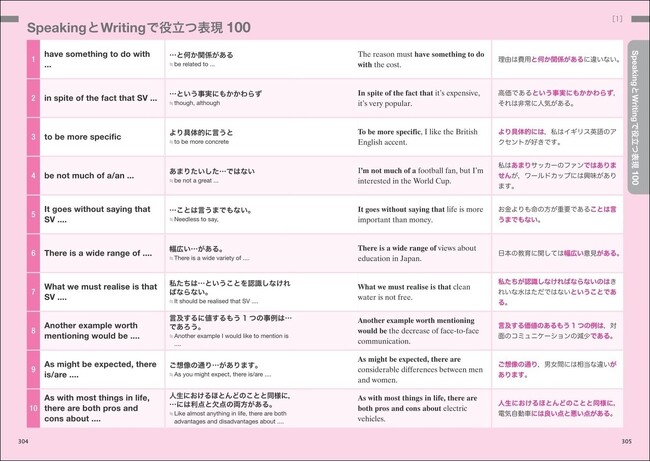 SpeakingとWritingで使える表現集を巻末に収録しています。
