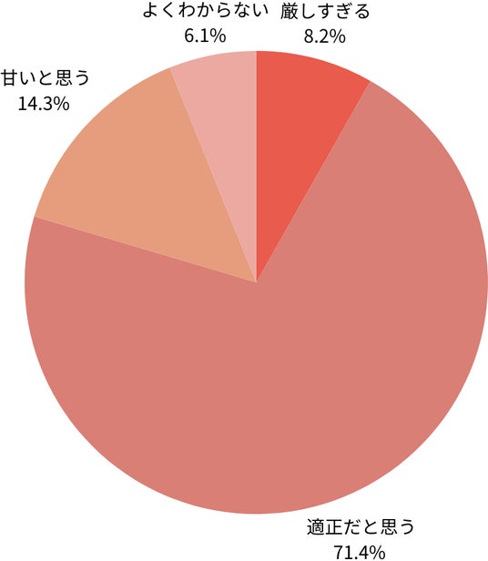 プロミスの審査基準については、「適正だと思う」人が71.4%で最も多く、「甘いと思う」人も14.3%いた。