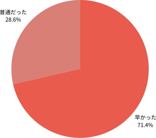 プロミスの審査のスピードが「早かった」と回答した人が71.4%で最も多く、反対に「遅かった」と答えた人は一人もいなかった。