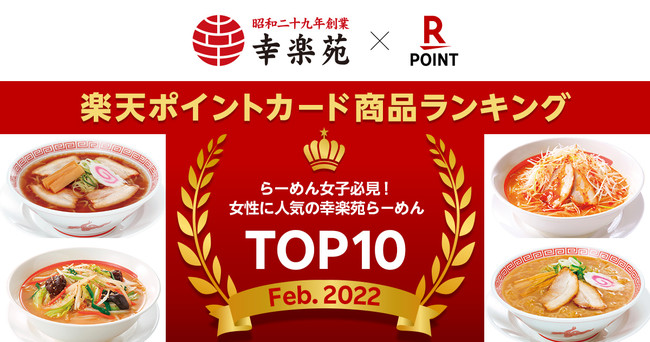 株式会社幸楽苑ホールディングス(本社: 福島県郡山市、代表取締役社長:新井田 昇、以下 幸楽苑)と楽天ペイメント株式会社(本社:東京都港区、代表取締役社長:中村 晃一、以下 楽天ペイメント)は共同で、「楽天ポイントカード商品ランキング」において「らーめん女子必見!女性に人気の幸楽苑らーめんTOP10!」を本日発表しました。