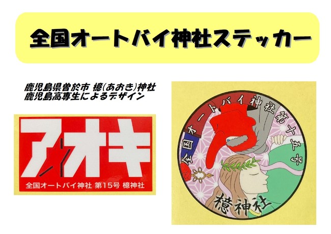 鹿児島工業高等専門学校(鹿児島県霧島市 校長:氷室昭三 以下「鹿児島高専」)電子制御工学科2年生の有村春汰さんと濱屋敷遙さんは、地域おこしを目的とした全国オートバイ神社のステッカー制作とPR動画制作を行いました。ステッカーは現在、檍(あおき)神社(鹿児島県曽於市末吉町南之郷)にて販売されています。また鎮座祭(認定式)PR動画についても、本校学生が制作したものが公開されています。