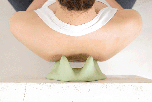 背筋をぐ~んと伸ばしながら、突起が肩甲骨周りの筋肉をグイっと刺激!