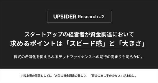 新規上場企業の20%以上が利用する法人カード*1「UPSIDER」(以下、UPSIDER)をはじめとする金融サービスを提供する株式会社UPSIDER(代表取締役:宮城徹・水野智規、本社:東京都港区、以下 当社)は、スタートアップの経営者(※個人事業主除く)を対象に、「スタートアップ企業の資金調達」に関するアンケート調査を実施しましたので、結果を報告します。