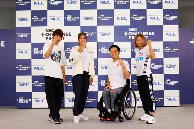 4選手とNECがタッグを組んで、国籍や性別、障がいの有無などに関わらず、誰もが夢を抱き挑戦するきっかけとなるような、さまざまな機会を創っていきます。