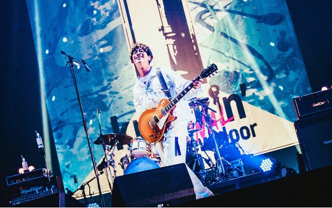 代表曲である「もっと光を」を放つと、会場の一体感、身体の底から湧き上がってくるような多幸感は最高潮に。パンクと祭囃子が融合したような「VS」、ファンキーなギターカッティングが小気味よい「バッドパラドックス」など、ジャンルの垣根を越えた多彩なリズムアプローチを繰り出し、観客の心を解放し思い切り躍らせていく。ステージ上のメンバーたち自身、歌と演奏に没頭し、心底ライブを楽しんでいるように見えた。田邊がギターを掻き鳴らしながら口を開き、語りと歌とがまるで一体化していくように始まった新曲「DOOR」。スクリーンに映し出されたメンバーの顔は、汗なのか涙なのか見分けがつかなかったが濡れて光っていて、このライブに懸ける彼らの熱意と真剣さをひしひしと感じ取ることができた。
