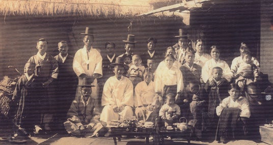 李秀渕の妻・朴先丹が義父の還暦祝いに長男・相均を連れて帰郷した際の集合写真。1933年撮影(李相祚氏提供)