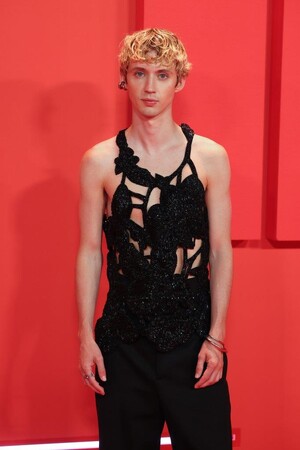 5月22日、フランスのカンヌで開催中の第76回カンヌ国際映画祭期間中に行われた「THE IDOL/ジ・アイドル」のアフターパーティーにて、トロイ・シヴァンが、2023年秋冬コレクションよりオーキッドの刺繍を施したカットアウェイベストにブラックウールのハイウエストトラウザー、レザーシューズを合わせて着用し登場しました。