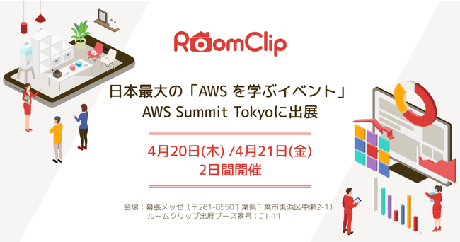 ルームクリップ株式会社(本社:東京都渋谷区、代表取締役CEO:高重正彦、以下、ルームクリップ)は、2023年4月20日(木)から21日(金)まで幕張メッセで開催される「AWS Summit Tokyo2023」に出展します。