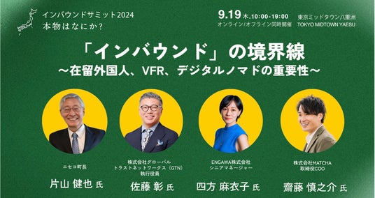 ENGAWA株式会社(代表取締役社長:牛山 隆信)は、2024年9月19日(木)に東京ミッドタウン八重洲にて開催された「インバウンドサミット2024」のトークセッション「『インバウンド』の境界線~在留外国人、VFR、デジタルノマドの重要性~」に登壇しました。
