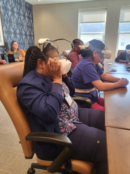 ナーシングホームのスタッフは人種も言語も多様であり、言葉だけの教育ではうまくメッセージが伝わらない実情もあります。本プロジェクトでは、VRを活用して、介護者チームが「見て・聞いて・感じる」革新的な認知症ケア教育を体験し、座学では得られない当事者視点から、認知症の方やその家族に対して深い共感を醸成している、という手応えを感じました。