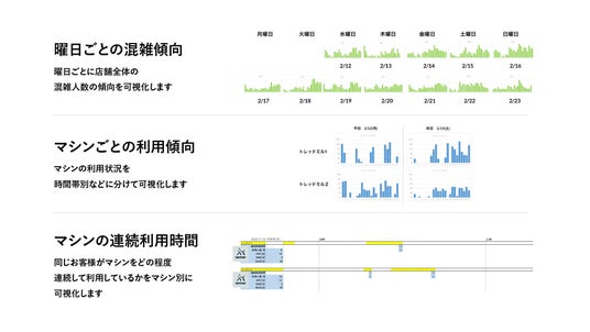 ・マシンごとの利用状況分析:稼働率の低いマシンの特定やレイアウト改善に活用