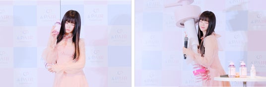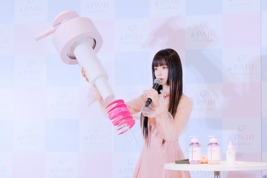 また、TSUKIさんを広告アンバサダーに起用するに至った経緯も紹介。CM動画をお披露目し、「多忙なアイドル生活を送るTSUKIさんにとっても、ヘアケアは自己管理の一環であり、同時にリラックスできる大切な時間でもあると弊社は考えます。TSUKIさんも、短時間で効率的にヘアケアができる新ブランド『&PAIR』の『2in1欲ばりタイパ美容』のコンセプトに共感してくださりました。また、日本のZ世代に熱い支持を受けており、明るく可愛らしいビジュアルが、『&PAIR』を使用する女性の美しさをうまく表現できると考えております。」と伝えました。