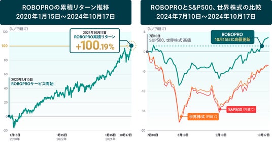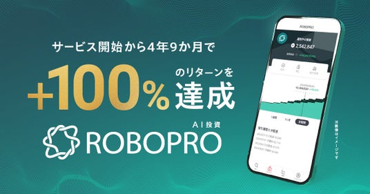 株式会社FOLIO(東京都千代田区、代表取締役:四元盛文、以下「FOLIO」)は、AI投資「ROBOPRO」の運用実績について、2020年1月15日のサービス開始から2024年10月17日までの約4年9ヶ月間で、+100.19%となったことをお知らせいたします。