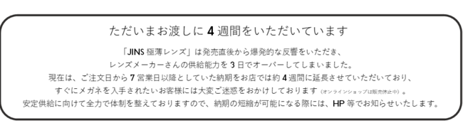 昨年12月15日(木)に全国のJINS店舗及びJINSオンラインショップ(www.jins.com)にて発売を開始した「JINS極薄レンズ」が発売以来、約1ヵ月で計画比300%※1越えと、売上絶好調です。※1 2022年12月15日~2023年1月17日現在