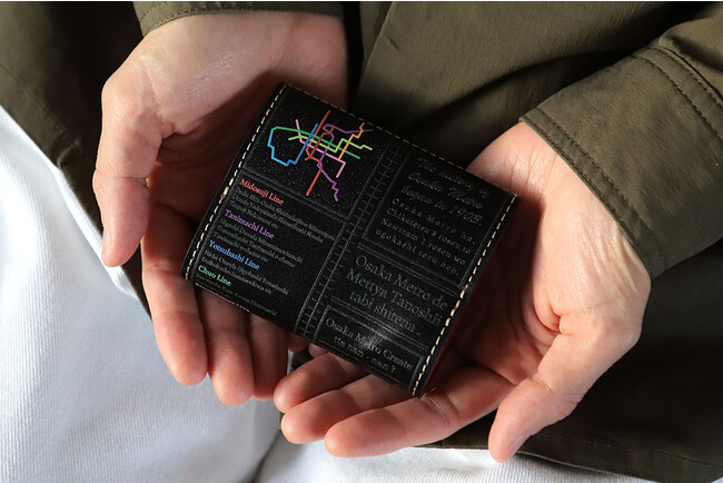 「走り続ける、変わり続ける。」をスローガンに大阪の街を走るOsaka Metro。 大阪・関西万博に向けてアクセスルートとなる中央線に、12年ぶりのOsaka Metroの新型車両400系が2023年に運行がスタート。400系の四隅に配置されたLEDの前照灯と尾灯が特徴的な近未来的なデザインを小さいふで表現しました。