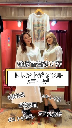 古着が特定のファッションジャンルでのみ楽しまれる傾向が見られ、その偏りが古着を取り入れるハードルとなっていることから、Z世代に人気の5つのファッションジャンル別コーデを紹介しています。全く違うコーデを紹介することで、古着も様々なファッションジャンルに取り入れられることを伝えています。