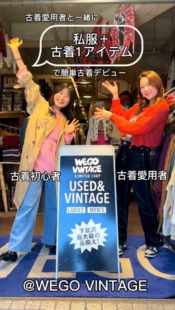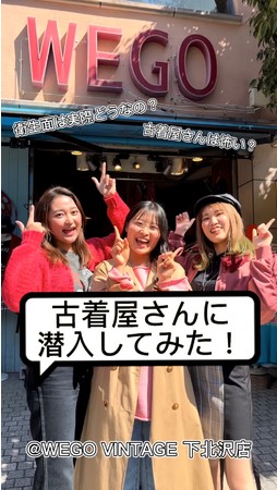 古着ノンユーザーの「古着屋・古着ユーザーの雰囲気が怖い」「衛生面が気になる」といった声を元に、古着屋内の撮影やスタッフの方へのインタビューを行いました。洋服だけではなく店内のインテリアやディスプレイの紹介を行い、スタッフの方からは「WEGOでは古着を全てクリーニングして販売している」といった衛生面などのお話をいただき、古着ノンユーザーが抱えている不安や懸念点を払拭出来るような動画となっています。
