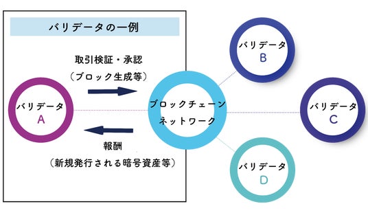 バリデータは、ブロックチェーン上の取引を検証し、ネットワークの合意形成に参加する存在です。一部のバリデータは、予め定められたルールに基づいて新たなブロック(取引データ)を提案する役割も担います。暗号資産市場において、ネットワークの安全性や透明性を維持するうえで不可欠な存在であり、日々の取引内容を正確に確認・記録することで、その貢献度に応じてステーキング報酬※を得ることができます。このような活動を通じて、ネットワークの健全性と持続性を支えるのがバリデータ事業です。