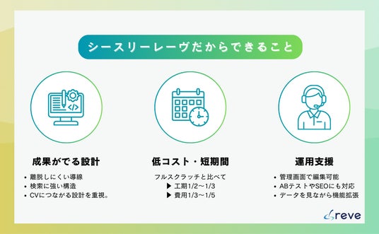 - 管理画面で手軽に改善できる→ 公開後も低コストで成長できる