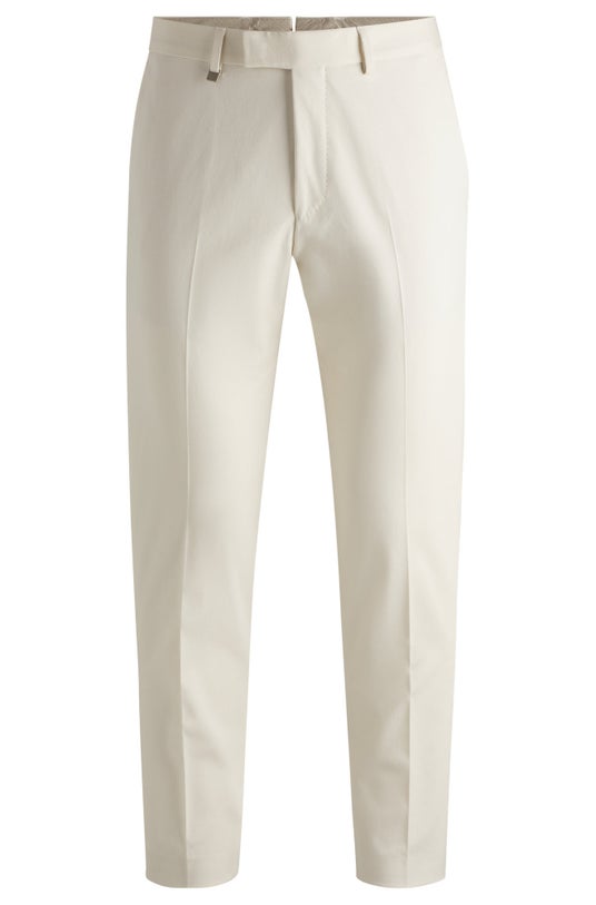 コレクションの快適で耐久性のあるパンツは、革新的な素材を使用してデザインされており、シワになりにくいストレッチコットンプリーツチノや、ストレッチコットンとカーボンファイバーヤーンをブレンドして織られたジーンズなどがあります。