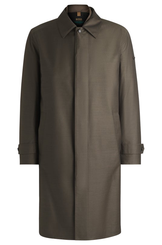 このコレクションは、スーパーファイン・メリノ・ウール・ジャージや、耐久性のあるカーボンファイバーとコットンデニムの混紡など、贅沢で高性能な生地で丁寧に作られたテーラードアイテムが特徴です。主なアウターウェアのスタイルは、洗練された機能性を兼ね備えています。ホワイト、ペールグレー、オパールグリーン、ダークミンクといったスマートなカラーパレットで展開されるこのメンズウェアは、革新性、BOSSの美学、そして英国を代表する自動車メーカーからインスピレーションを得たエレガントなデザイン要素を完璧に表現しています。