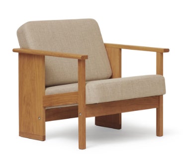 程よい反発感のあるウレタンシートで、コンパクトながら快適な座り心地。ソリッドな水平垂直、斜めのラインにナチュラルなリネンのキャンバスが良いアクセント。大きな後ろ脚が安定と安心感を与えてくれます。