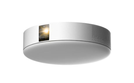 目に優しく、より明るく、さらに進化したハイエンドモデル。天井の一般的な照明器具、シーリングライトに「高性能プロジェクター」と「高音質スピーカー」を搭載し、コードレスで置き場所を取らない画期的な照明一体型3in1プロジェクターを開発しました。