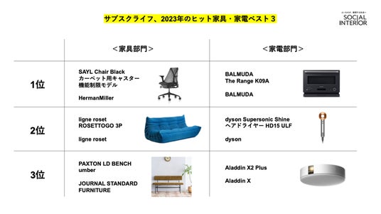 サブスクライフ、2023年のヒット家具・家電ベスト3