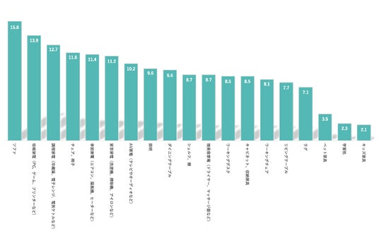 - 2024年に購入を検討している、検討したい家具・家電の一位は「ソファ」、次いで「情報家電」「調理家電」が続く。