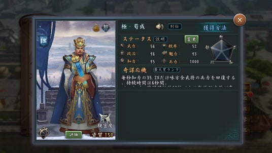 新たな極・武将として「極・荀彧」が登場します。